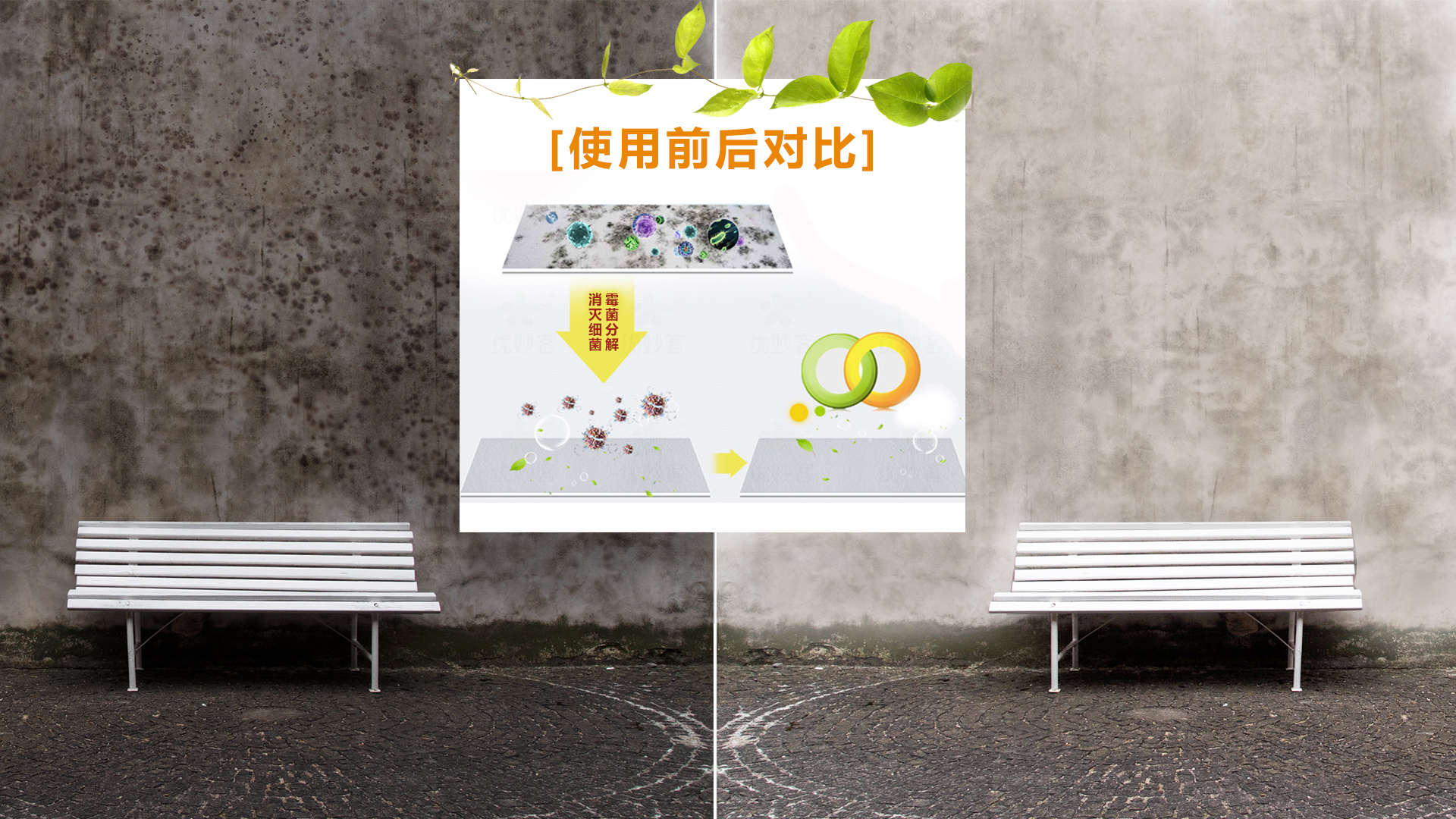 均勻噴濕待處理面后即可離開,30分分鐘后,霉斑已經全部消失。
